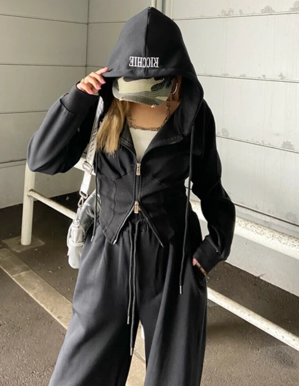 フードロゴショートパーカー×ワイドパンツSETUPꯁꯧ